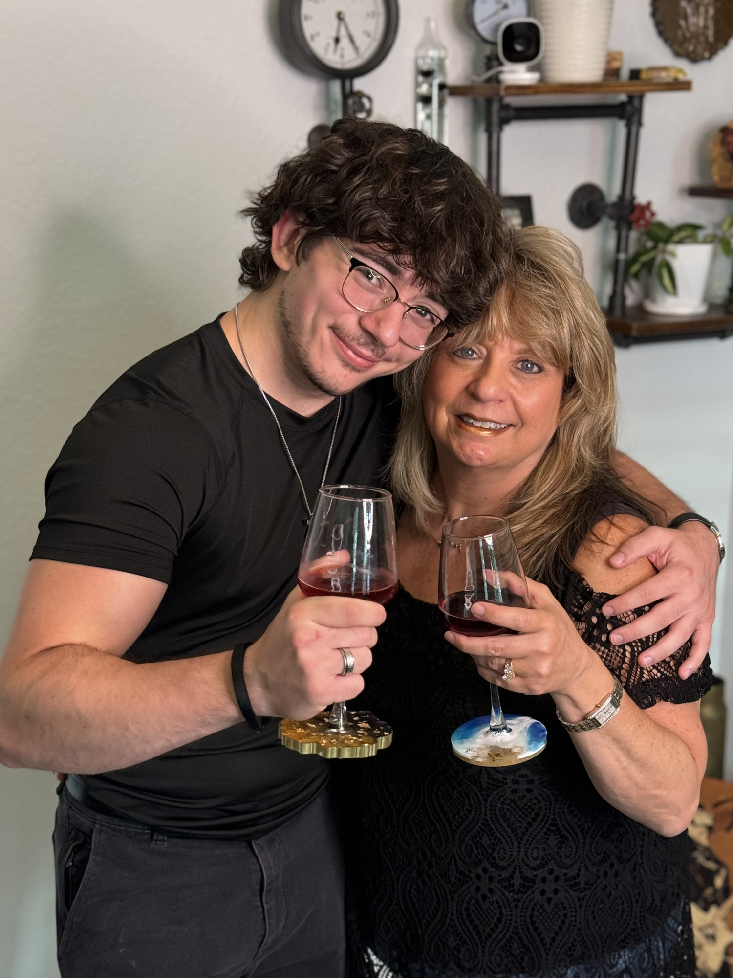 Our story is one of love and family, all wrapped up in beautiful, handmade wine glasses. I'm Nick, but my mom, Cheryl is the creative spirit behind each glass, pouring her passion for art and wine into every piece she makes. I handle all things online, ensuring our small business reaches you with the same care and warmth we put into our craft. We're dedicated to making elegant and unique glasses that bring a touch of joy and sophistication to your moments of relaxation. Whether you're unwinding after a long day or celebrating something special, our glasses are designed with you in mind. Each one is crafted with the highest quality materials and a lot of love because you deserve nothing less. When you choose Gala Glass, you're not just getting a beautiful wine glass; you're joining our family, and we couldn't be more grateful for your support. Thank you for being a part of our journey.